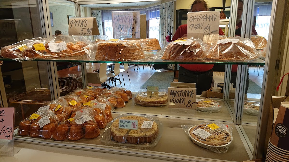 Mukava pieni kahvila, mistä saa todella edullisesti hyvää pullaa, kakkua, leivoksia ja suolaista piirakkaa. Kiva rauhallinen tunnelma, saat lukea lehden rauhassa samalla.